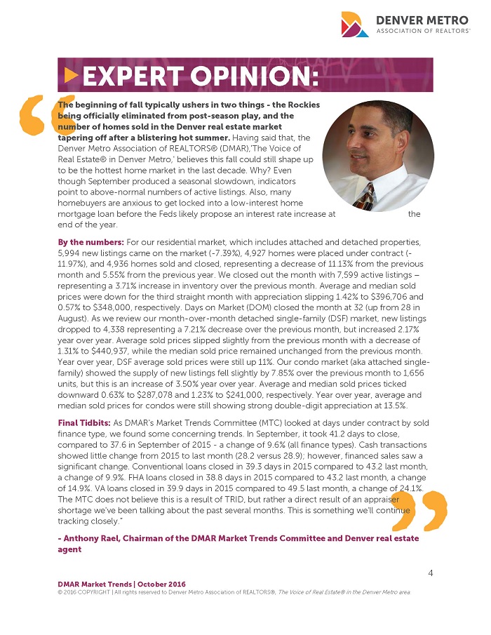 October 2015 - Denver Real Estate Market Statistics & Trends Report