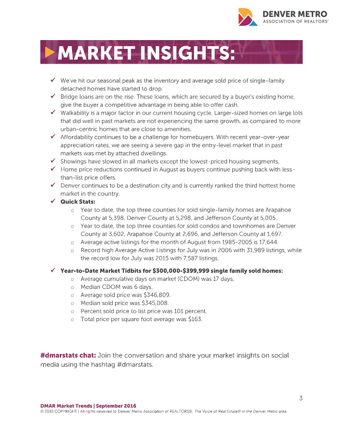 September 2016 - Denver Real Estate Market Trends Report
