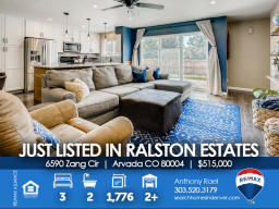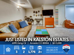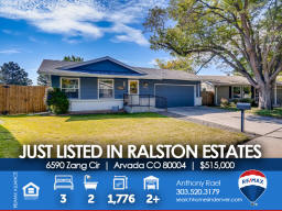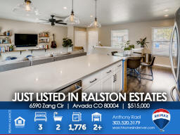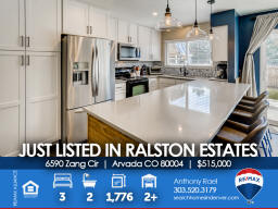 6590 Zang Circle | Arvada CO 80004 This one shows like a model and will satisfy the pickiest buyer. The main floor features an open floor concept with beautiful engineered hardwood flooring, 18'x14' family room that overlooks the newly renovated kitchen with new custom cabinetry & tiled backsplash, stainless steel KitchenAid appliances and solid surface countertops. The large primary bedroom includes a 3/4 enSuite bath + second bedroom & full bath nearby. Basement is fully finished with a bedroom #3, secondary family room or flex space for workout equipment or home office if needed + laundry room (washer/dryer included). New double-wide & energy-efficient sliding glass door so you can easily transition to your outdoor entertaining space and large and very private backyard (no neighbors behind). New carpeting/pad in bedrooms & basement + new energy-efficient Air Conditioner and newer furnace for added year-round comfort. Sewer line to city main was replaced three years ago. This home needs nothing - just move right in and start enjoying life in Arvada! Say goodbye to unpredictable Xcel Energy bills because the new SunRun Solar System helps eliminate electricity consumption and even sells back the extra power on your grid to Xcel who will credit your utility bills! The Ralston Estates neighborhood is surrounded by parks, trails and creeks - including Yankee Doodle & Ralston Valley Parks + APEX Center / Ice Arena and Skateparks, Arvada Center for the Arts and Humanities and only 10 minutes to the shops, eateries and brewpubs in Olde Town. Jump on the RTD Rail Line at 49th & Ward Rd for a quick 20-minute commute to Union Station, Coors Field, Pepsi (Ball) Center, Denver Center for the Performing Arts, Buell Theater and everything else in Downtown Denver. For those of you with little ones, Stott Elementary is a half block away and easily accessible from back gate. This beauty won't last long, so be sure to see it this weekend! Listed by Anthony Rael. For more info, 'Just Call Ants' at 303/520-3179.